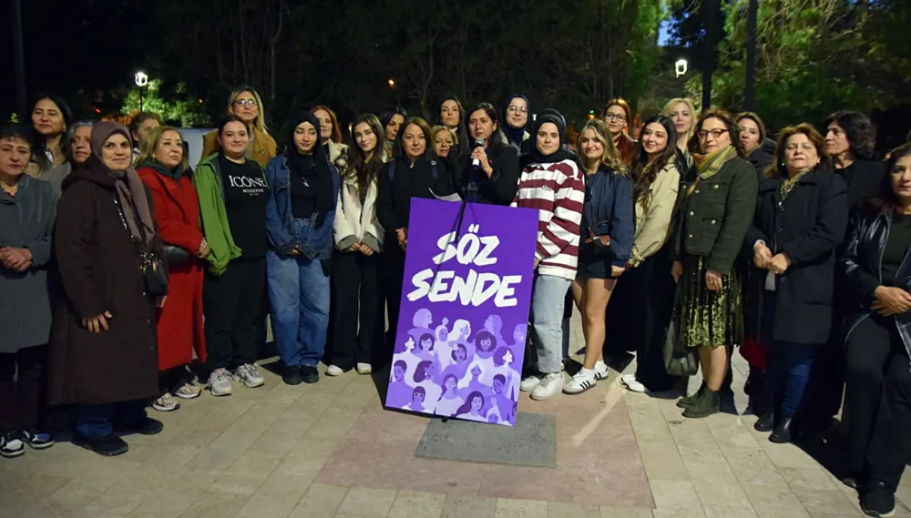 Özgürtan Çığ konuşmasını şu şekilde sürdürdü: “Bugün kadınlar sadece şiddetle değil; yoksullukla, güvencesizlikle ve görünmeyen emek sömürüsüyle de mücadele ediyor. Ev içi bakım yükü hâlâ büyük ölçüde kadınların omzunda. Çocuk, yaşlı, engelli bakımı kamusal bir sorumluluk olması gerekirken kadınların “doğal görevi” gibi dayatılıyor. Kadınlar hem evde ücretsiz bakım emeği veriyor hem iş hayatında eşitsizlikle karşılaşıyor. Bu tabloyu kabul etmiyoruz! Kadının ekonomik bağımsızlığı olmadan özgürlükten söz edilemez. Bu nedenle eşit işe eşit ücret talebimizi bir kez daha haykırıyoruz. Aynı işi yapan kadınların daha düşük ücret aldığı, terfilerde geri bırakıldığı, güvencesiz çalışmaya mahkûm edildiği bu adaletsiz düzen değişmelidir. Emeğimiz görünmez değildir, hakkımız pazarlık konusu değildir.”