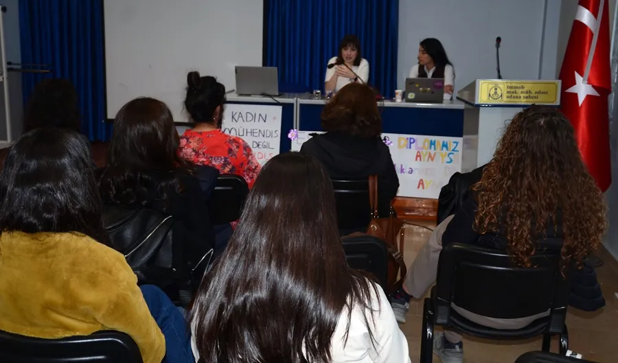 Avukat Umay Büyükdağ ve Ayşe Zilan, TMMOB Adana İl Kadın Komisyonuna 8 Mart’ın önemi ile kadın hakları konusunda bilgiler verdi
