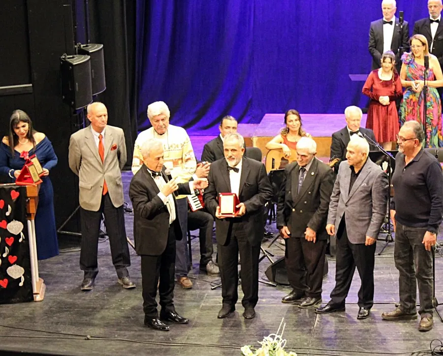 Ahmet Sağyaşar Türk Sanat Müziği Korosu’nun bu unutulmaz etkinliğine katkıda bulunan İsmail Görkem ve son sineması Sabri Şenevi’ye teşekkür plaketleri Mimar Kamil Erginöz, Mimar Murat Ulaş ve Gazeteci Şahin Esendemir tarafından takdim edildi.