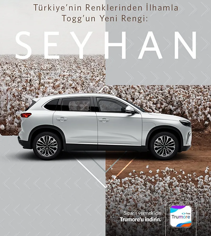“Adana Çukurova’nın bereketli ovalarındaki pamuk tarlalarından ilham alan, Togg’un yeni rengi Seyhan ile tanışın” paylaşımı ile tanıttı.