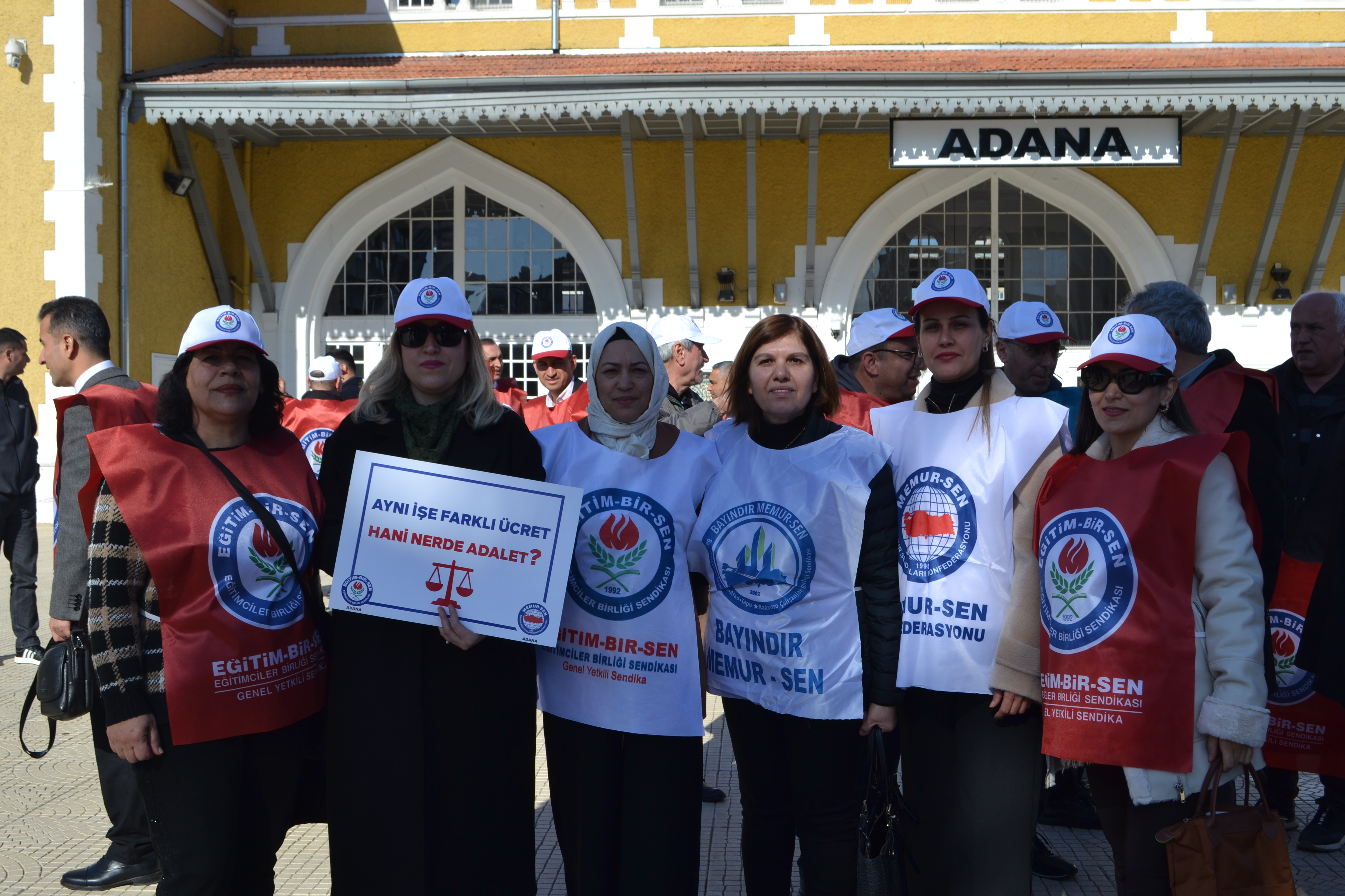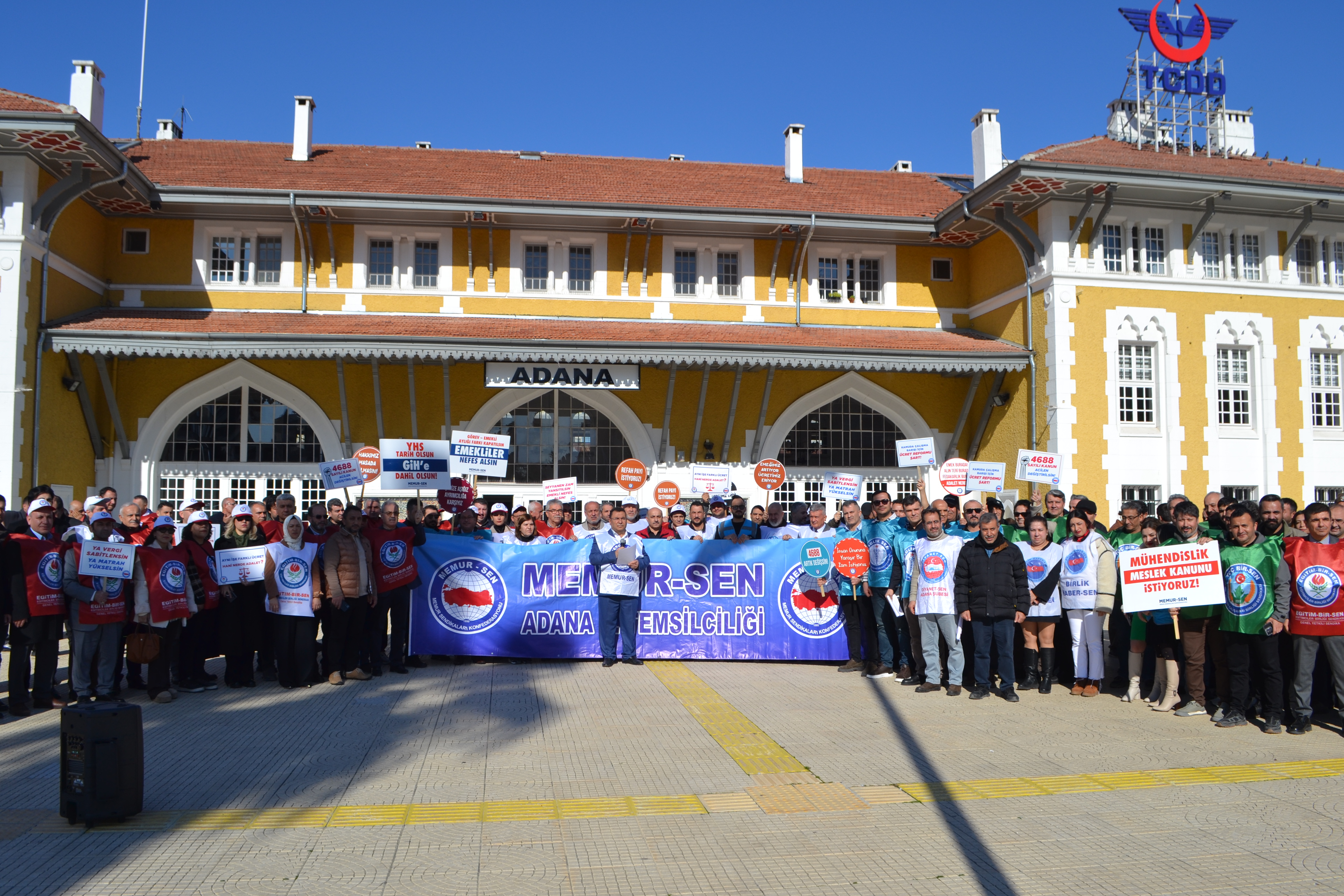 Memur-Sen’in “Ücrette Dengesizlik, Gelirde Adaletsizlik, Kamuda Huzursuzluk Bitsin” çağrısıyla 81 ilde eş zamanlı yaptığı basın açıklamasının Adana şubesi İstasyon Meydanı’nda gerçekleştirildi.