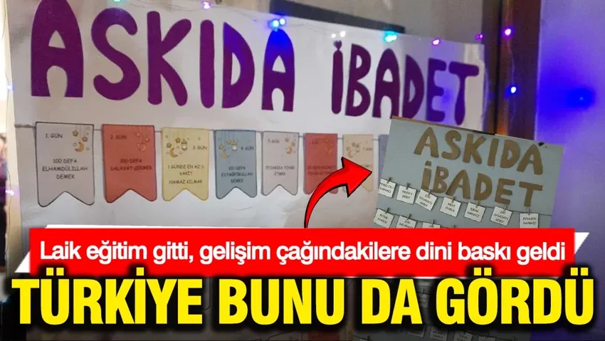 Milli Eğitim Bakanlığı bünyesindeki bazı okullarda “Askıda İbadet” adında bir etkinlik başlatıldığı ortaya çıktı. Uygulama kapsamında öğrenciler, üzerinde dini görevlerin yazılı olduğu kartları çekerek bu ibadetleri yerine getirmeye teşvik ediliyor. Okuma-yazma çağındaki öğrencilere yapılan bu uygulama "laiklik" ilkesine ters düştüğü iddiasıyla eleştiriliyor.