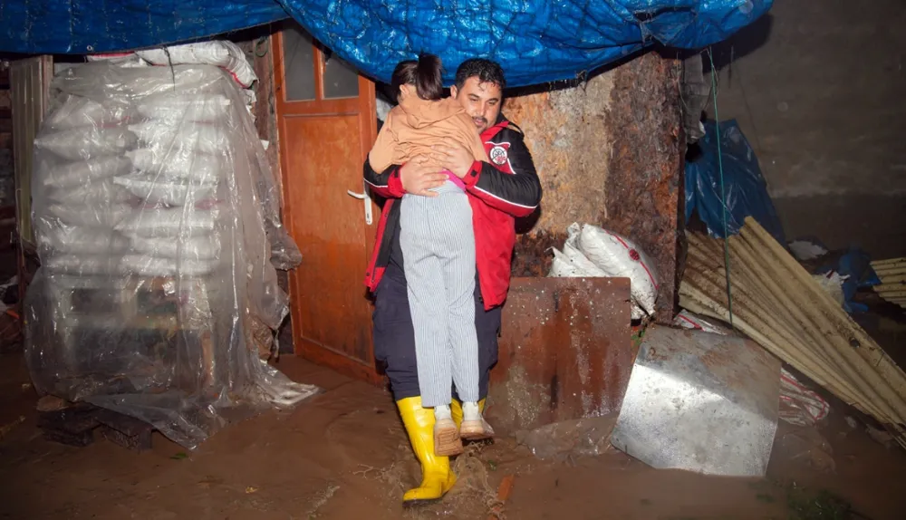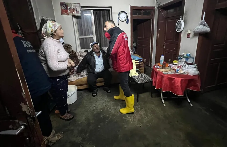 Özellikle su baskını riski bulunan bölgelerde yürütülen çalışmalar kapsamında ekipler, vatandaşlara yardım eli uzatarak güvenli bir şekilde evlerinden çıkmalarını sağladı.