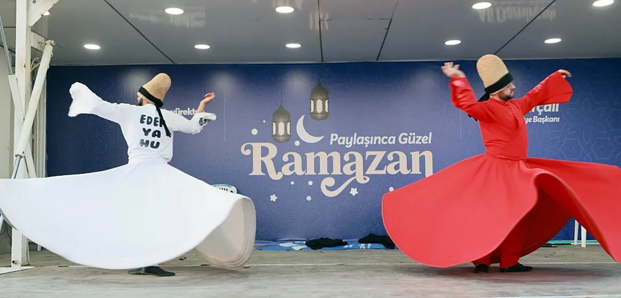 Ramazan ayının birlik, beraberlik ve paylaşma ruhunu yaşatmak amacıyla düzenlenen programda, iftar öncesinde Kur’an-ı Kerim tilaveti okunurken ilahiler seslendirildi. Program kapsamında sahne alan semazen gösterisi de vatandaşlar tarafından ilgiyle izlendi.