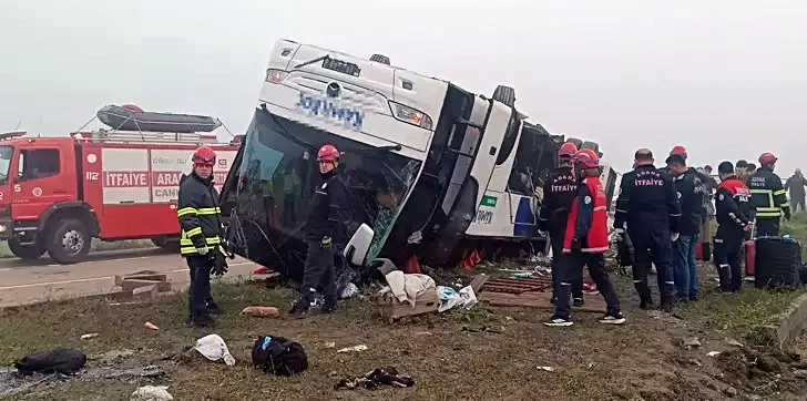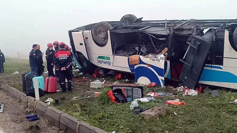 Adana’da kontrolden çıkan yolcu otobüsü refüje çarparak devrildi. Kazada 2 kişi hayatını kaybederken 17 kişi yaralandı.