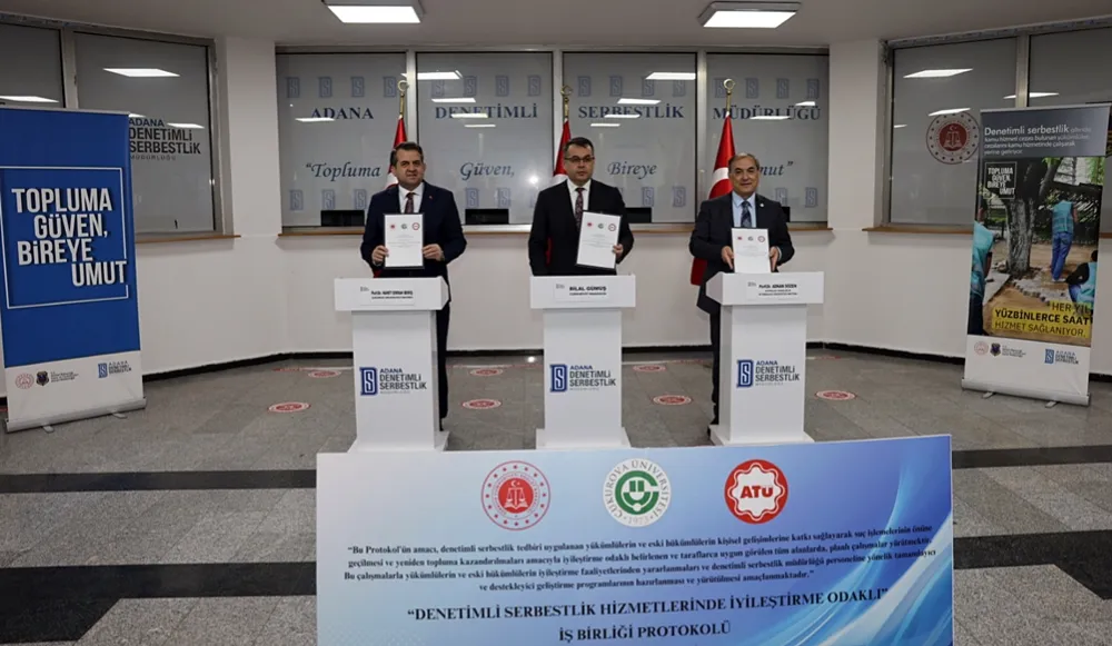 Çukurova Üniversitesi (ÇÜ), Adana Alparslan Türkeş Bilim ve Teknoloji Üniversitesi (ATÜ) ile Adana Denetimli Serbestlik Müdürlüğü arasında gerçekleştirilen bu protokol, yükümlülere yönelik eğitim ve iyileştirme faaliyetlerini kapsıyor.