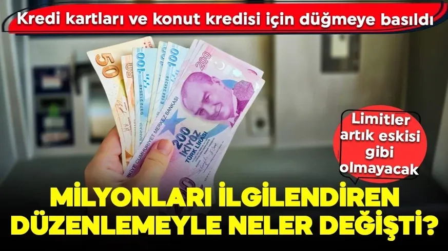 Tüketicilerin tüm bankalardaki kredi kartlarının toplam 400 bin TL üstündeki limitleri yüzde 50 ile 80 arasında değişen oranlarda azaltılacak. Kart limiti düşürülürken bankalar son 12 aydaki en yüksek kullanım oranını dikkate alacak. Konut kredilerinde birinci el/ikinci el konut ayrımı kaldırıldı. Değeri 5 milyon TL'ye kadar olan konutlarda, konut değerinin yüzde 90'ına, 5 milyon TL ile 7 milyon TL arasındaki konutlarda yüzde 80'ine, 10 milyon TL ile 20 milyon TL arasındaki konutlarda yüzde 50'ye kadar kredi kullanılabilecek.
