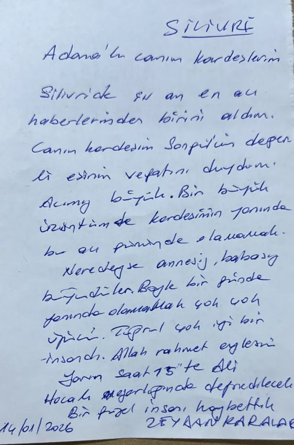 Ailenin ve yakın çevresinin, Bakanlıktan çıkacak kararı beklediği belirtilirken, Zeydan Karalar’ın cezaevinden özel izinle bir günlüğüne Adana’ya gelerek eniştesinin cenaze törenine katılmasının beklendiği ifade edildi. İznin çıkması halinde Karalar’ın cenazeye katılarak ailesinin acısını paylaşması öngörülüyor.
